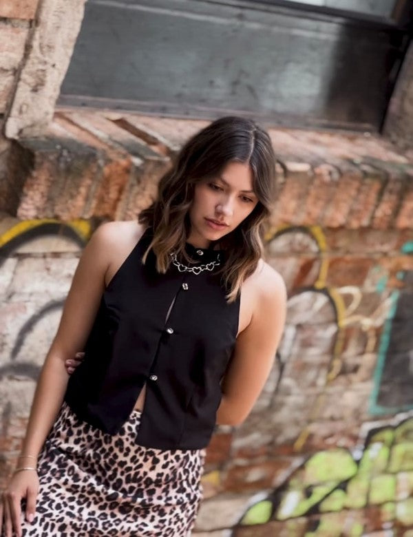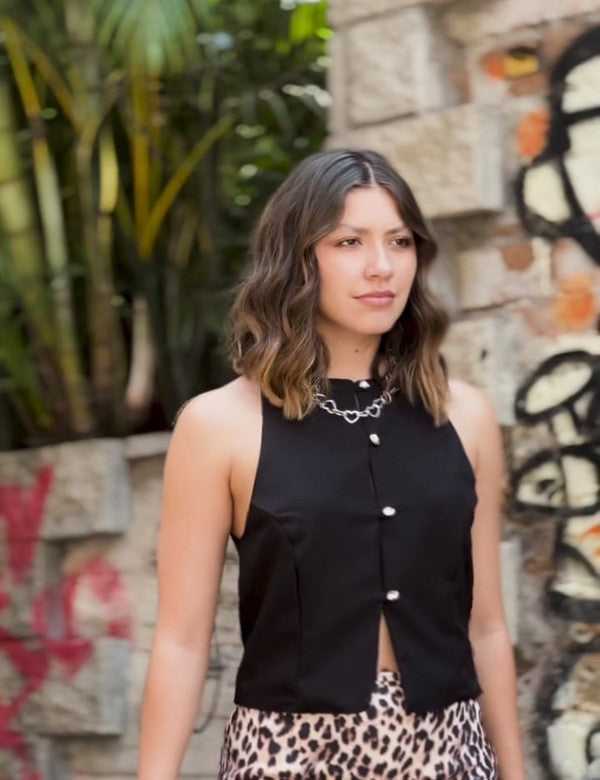 El Crop Top Allison es la mezcla perfecta entre estilo audaz y elegancia discreta. Su diseño con textura en ondas y tirantes cruzados realza el look con un toque sofisticado y actual.