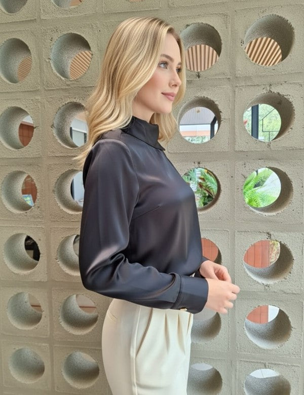 La blusa cuello alto es ideal para un look moderno y sofisticado. Diseñado para ofrecer estilo y comodidad en cada uso.