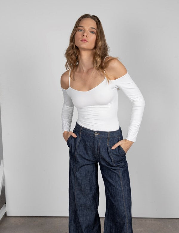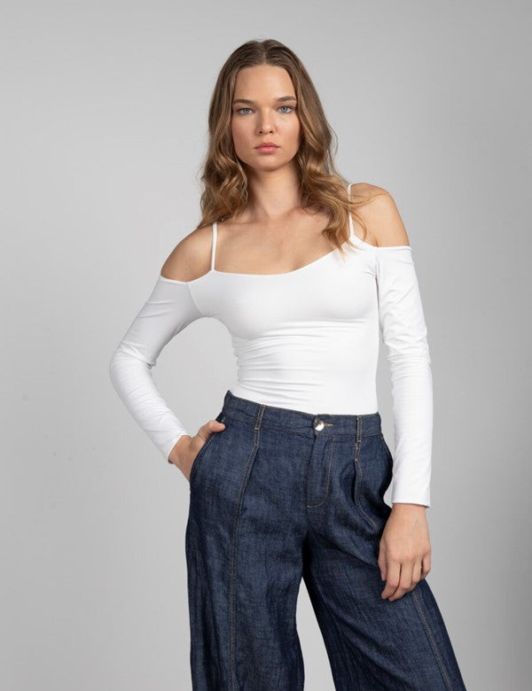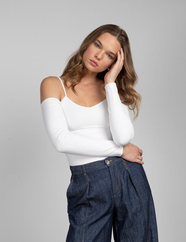Este body es el complemento ideal para cualquier outfit. Su diseño asimétrico lo hace único, te hará sentir sexy y cómoda al mismo tiempo.