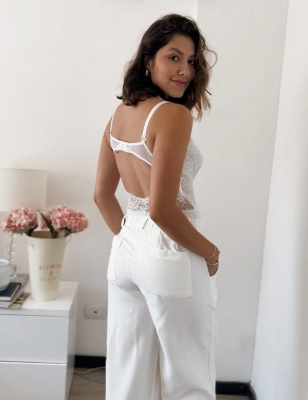 Tiene bolsillos, pretina anatómica que asienta y resalta la cintura y unos prenses en la parte de adelante que le dan caída y movimiento al pantalón.