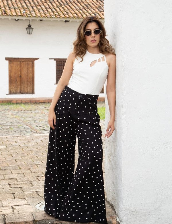 Pantalon Palazzo Basic Lunares Negro