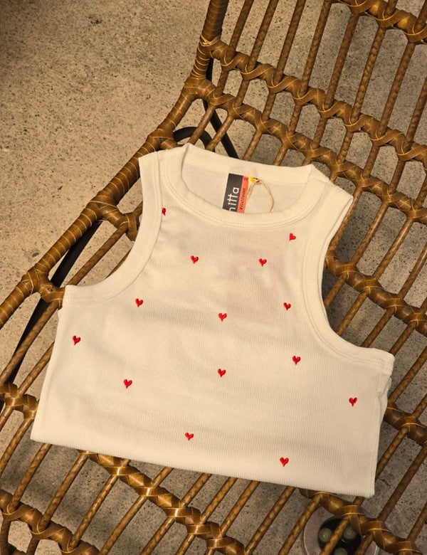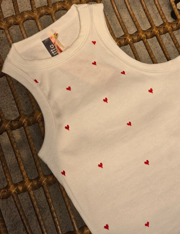 Los corazones son bordados y hechos a mano lo que lo hacen una prenda única